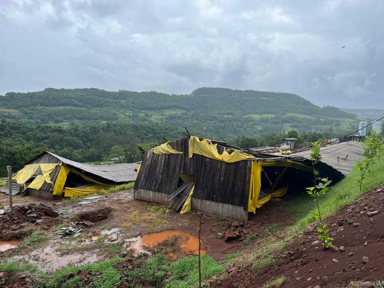 O local mais afetado foi à propriedade da família Dornelles, localizada na Linha Professor Ugart, na divisa com Pinheirinho do Vale. No local os fortes ventos causaram severos danos em dois módulos que abrigavam suínos.
