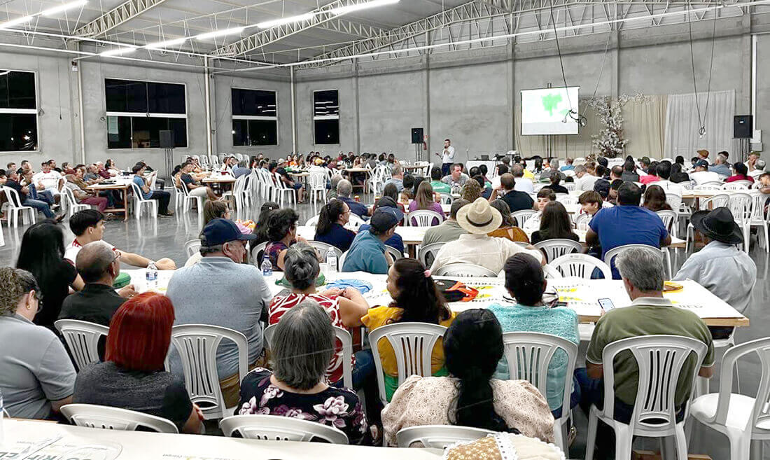 Com a presença de mais de 300 pessoas, a comunidade de Palmitinho sediou a quarta pré-assembleia da Cotrifred desta temporada, na noite da segunda-feira, 17, no salão paroquial católico. O presidente da cooperativa, Elio Luiz Duarte Pacheco, liderou o momento, apresentando ações registradas no relatório de 2024. Também foram mostradas informações do Balanço Patrimonial de 2024 e do Planejamento Estratégico 2025.