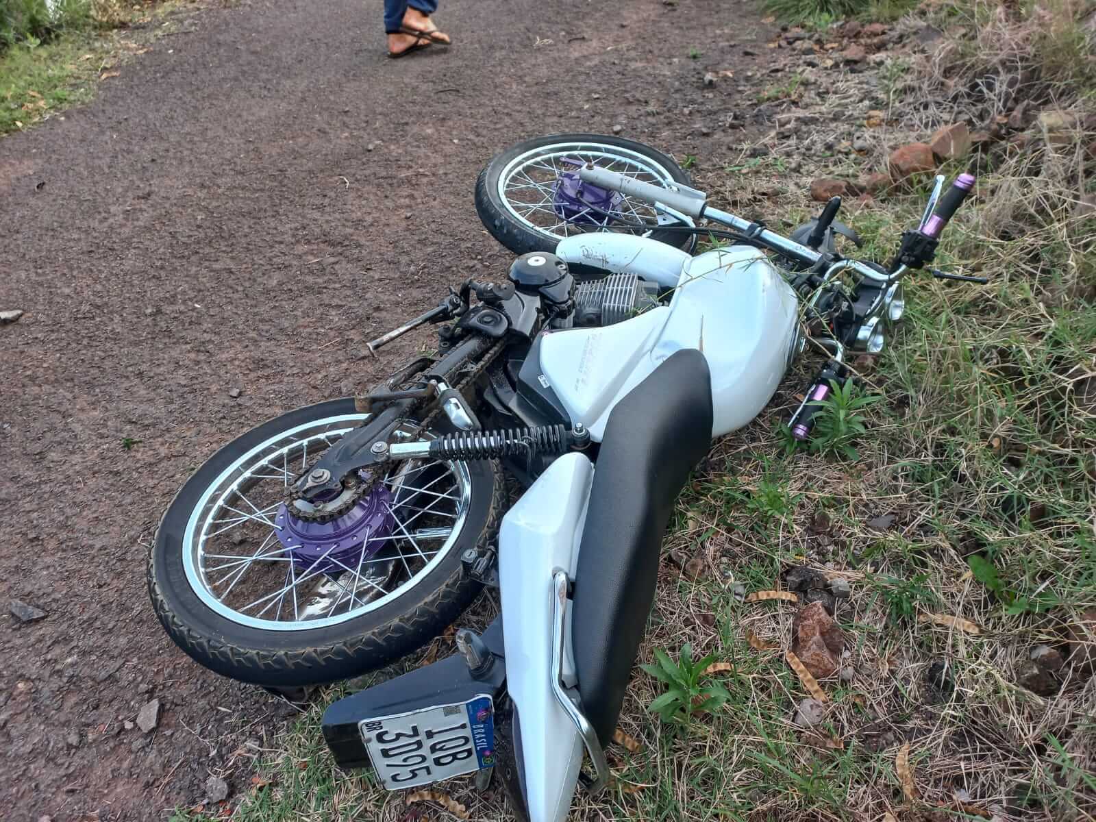 O motociclista identificado como Cleiton Wesley Machado Queiroz, de 19 anos, conduzia a motocicleta Honda CG/150 que colidiu na lateral de um veículo Chery QQ, de cor azul.